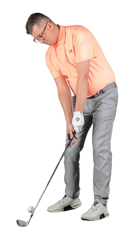 While it is possible to swing too steeply downward into the ball, most higher handicappers suffer with the opposite attack angle issue – swinging too level or even slightly upward into the ball. Generally this happens through a mistaken concept that it is our job to hit the ball upwards… an idea that sees weight stay back as we try to scoop the ball into the sky.