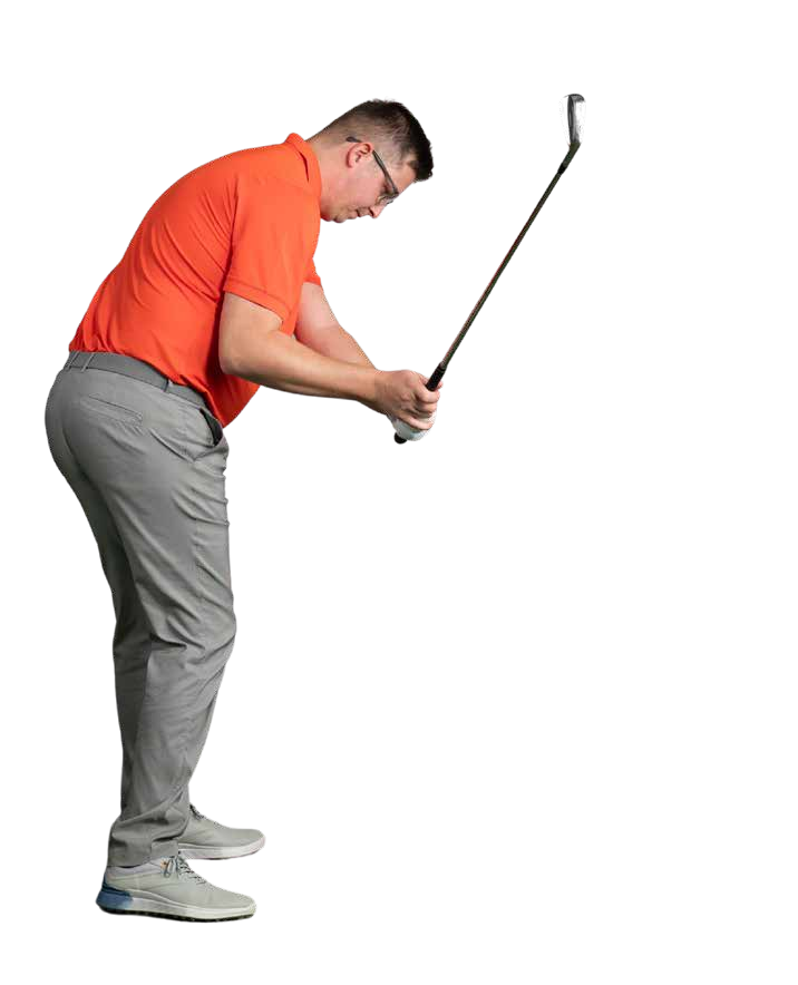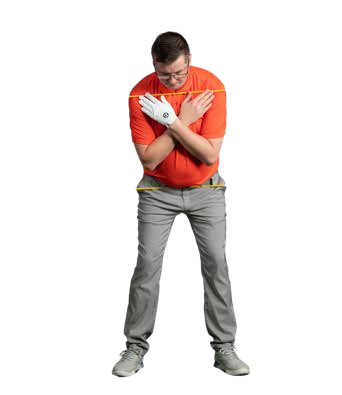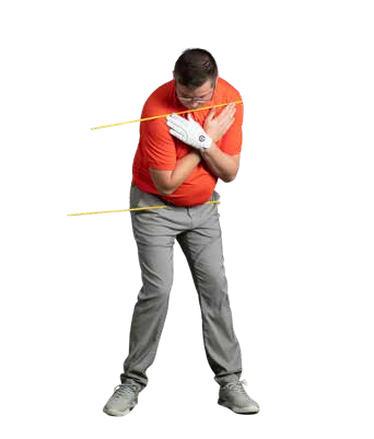 As we’ve referenced, hitting from the top is essentially a fault of sequencing. To find the ideal downswing path we need to move our body in a certain order… which we can simplify to ‘hips first, shoulders second’. The best way to work on this is with the help of a couple of alignment sticks. Place the first through your belt loops and the second across your shoulders.