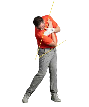 In the crime of hitting from the top the guilty party is the upper body – shoulders and torso. The backswing coil loads these joints with potential power, and the urge to expend it straight away can prove too strong. When this happens, the shoulders turn too early and too horizontally (level with the ground) at the start of the downswing. The arms and club have no option but to follow and are thrown well outside the ideal plane or attack path. Often the hips join in too, and weight is held back as the entire body pivots around the trail leg. This is basically the opposite of the ideal, ground-up downswing sequence of movement… which never stands a chance.