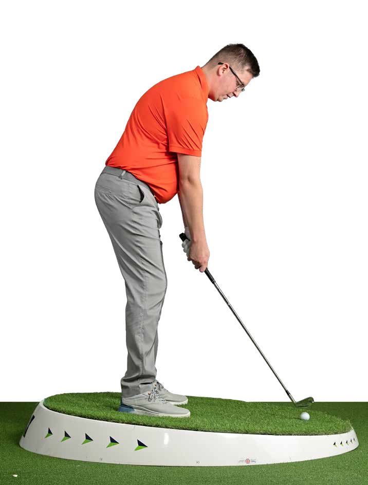 The more we tilt from the hips, the harder it is to rotate fully through the backswing. This inevitably shortens the backswing and reduces clubhead speed. Don’t fight this; you’ll only lift up and out of posture, compromising the strike. Instead, just take a stronger club – perhaps an 8 or even 7-iron instead of a 9. Keeping your swing shorter and more compact will also boost your chances of clean, pure contact.